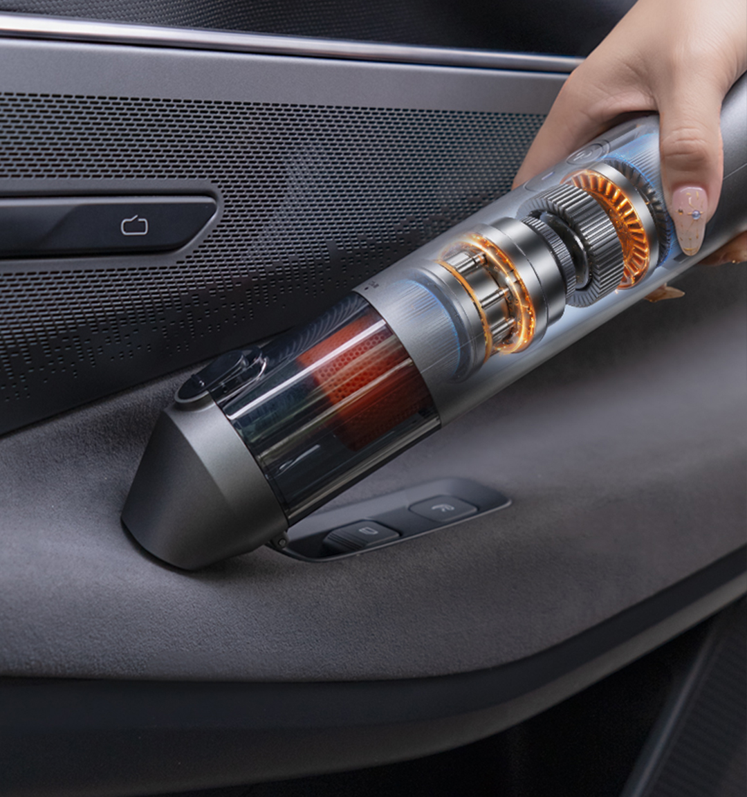 亿力车载随手吸 VH02同样惊艳亮相,不仅外观简约时尚,功能更实现全面升级。产品集吸、吹、抽、充多功能于一体,车内清洁随取随用,户外露营轻松胜任,快速还原车内洁净清爽,守护每一段舒适出行。