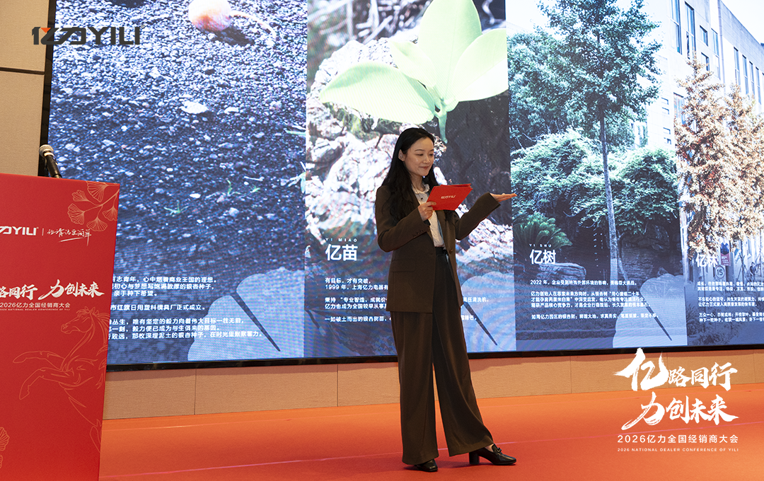 经销商大会启幕之际,人力资源中心总监黄佳倩女士发起“亿林行动”主题宣讲。她以银杏生长为脉络,回望亿力41年征程:从一粒银杏种子扎根蓄力、向阳生长,到历经风雨淬炼坚韧内核,诠释着毅力、专注、务实的品牌底色。并倡导以诚信为基、以协作为纽带,凝聚每一位合作伙伴、用户与员工的力量,践行“聚树成林,不惧挑战”的共生信念!